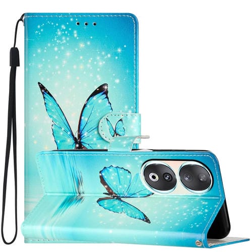 Étui de téléphone en cuir de dessin coloré pour Honor 90 (papillon bleu)