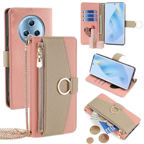 Funda para Teléfono Honor Magic5 Cuero Textura Litchi Cruzada (Rosa)