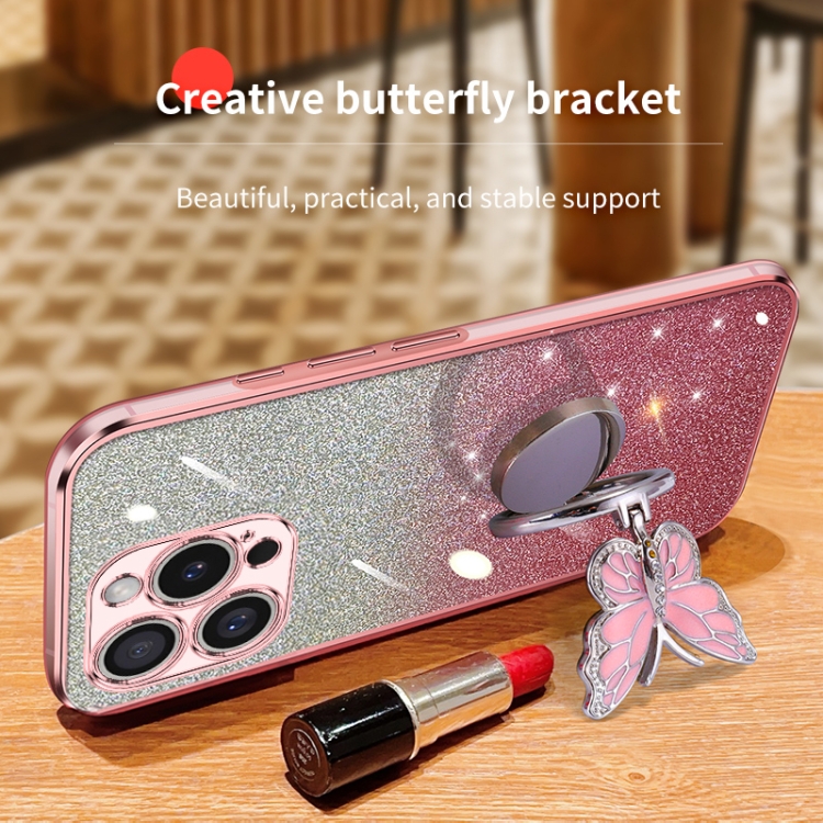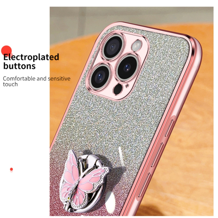 Funda para Teléfono TPU con Soporte Mariposas Purpurina Degradada para iPhone 16 Pro (Rosa)