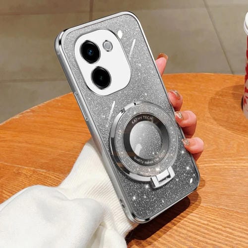 Funda para Teléfono de TPU con Soporte Redondo con Purpurina Degradada Plateada para Vivo Y200 5G (Plateada)