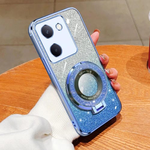 Gradient Glitter Plating Round Holder TPU Phone Case for vivo Y100 5G(Sierra Blue)
