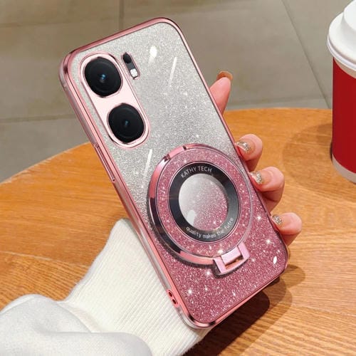 Funda para Teléfono de TPU con Soporte Redondo y Purpurina Degradada Plateada para Vivo Iqoo Neo9 (Rosa)