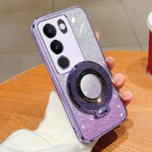 Funda para Teléfono de TPU con Soporte Redondo y Purpurina Degradada Plateada para Vivo V29/V29 Pro (Morada)