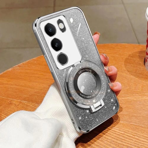 Funda para Teléfono de TPU con Soporte Redondo y Purpurina Degradada Plateada para Vivo V29/V29 Pro (Plateada)
