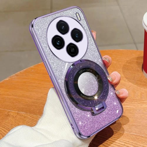 Funda para Teléfono de TPU con Soporte Redondo y Purpurina Degradada Plateada para Vivo X100S (Morado)