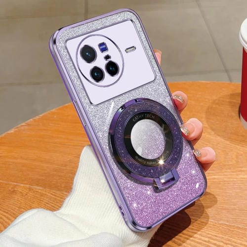 Funda para Teléfono de TPU con Soporte Redondo y Purpurina Degradada Plateada para Vivo X80 (Morado)