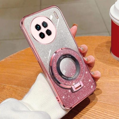Funda para Teléfono de TPU con Soporte Redondo y Purpurina Degradada Plateada para Vivo X90 (Rosa)