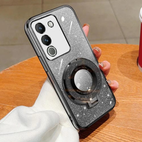 Silver Gradient Glitter Round Holder TPU Phone Case for vivo Y200 Global/V29e(Black)