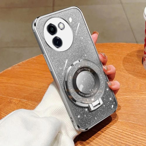 Funda para Teléfono de TPU con Soporte Redondo y Purpurina Degradada Plateada para Vivo Y200I/T3X 5G (Plateada)