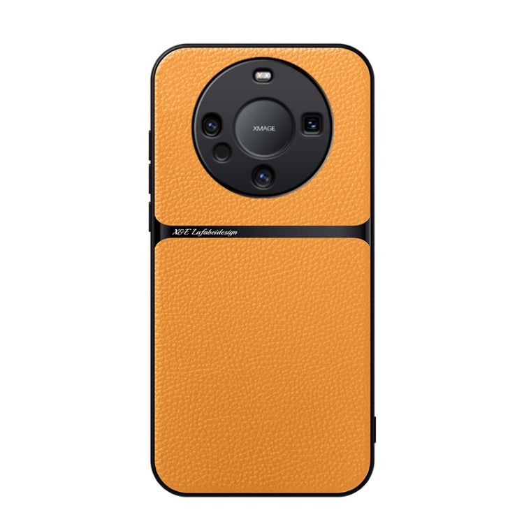 Funda para Teléfono Huawei Mate 60 Piel de Lichi Cobertura Total Magnética a Prueba de Golpes (Amarilla)