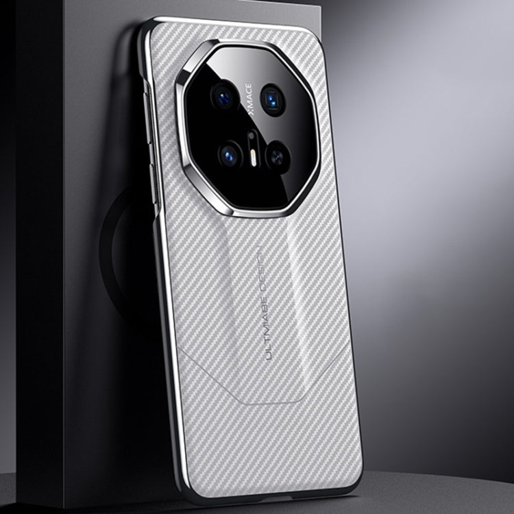 Funda para Teléfono Huawei Mate 70 Pro con Diseño Imitación Fibra de Carbono (Blanca)
