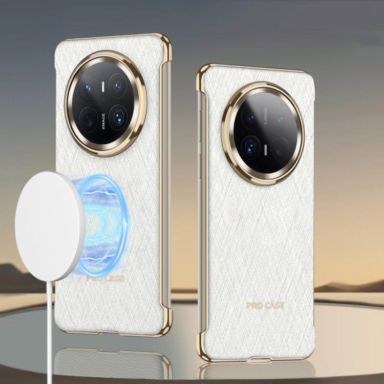 Funda para Teléfono Huawei Mate 70 Pro Cuero Galvanizado sin Bordes Gkk con Magsafe (Brocado Plateado y Blanco)
