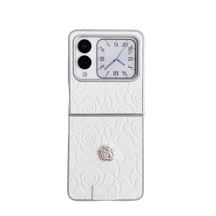 Funda para Teléfono Huawei Nova Flip con Diseño de Cuadros 3D de Camelia (Blanca)