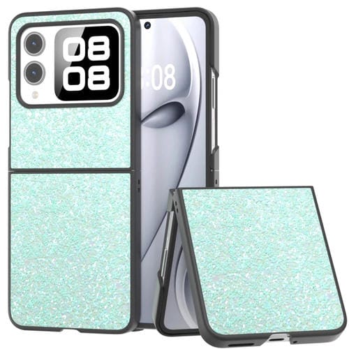 - 1x Funda para Teléfono Huawei Nova Flip con Marco Negro y Purpurina de Colores (Verde Claro)