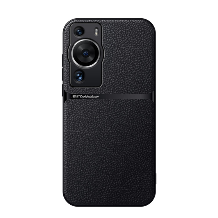 Funda para Teléfono Huawei P60 Pro Piel de Lichi Cobertura Total Magnética a Prueba de Golpes (Negra)