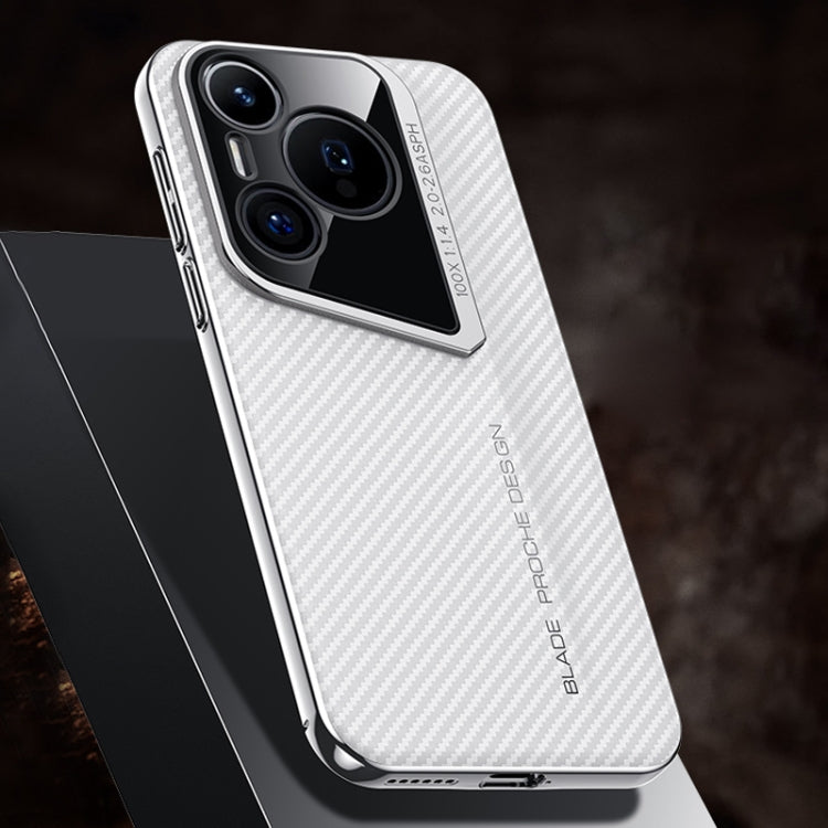 Funda para Teléfono Huawei Pura 70 con Textura de Fibra de Carbono para PC (Blanca)