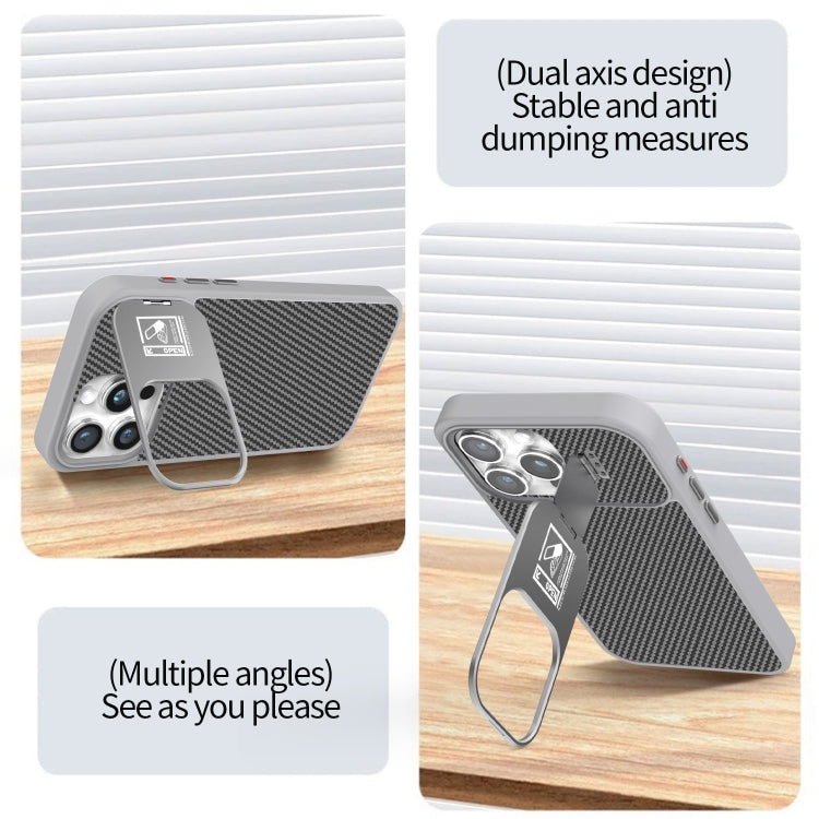 Funda para Teléfono Magsafe Fibra de Carbono con Soporte Plegable para iPhone 15 Pro Max (Gris)