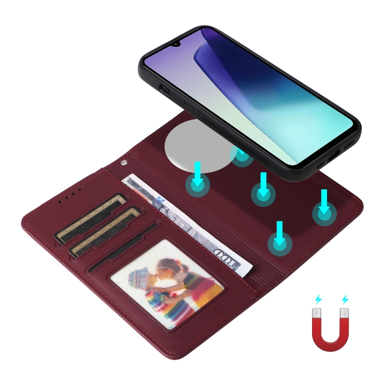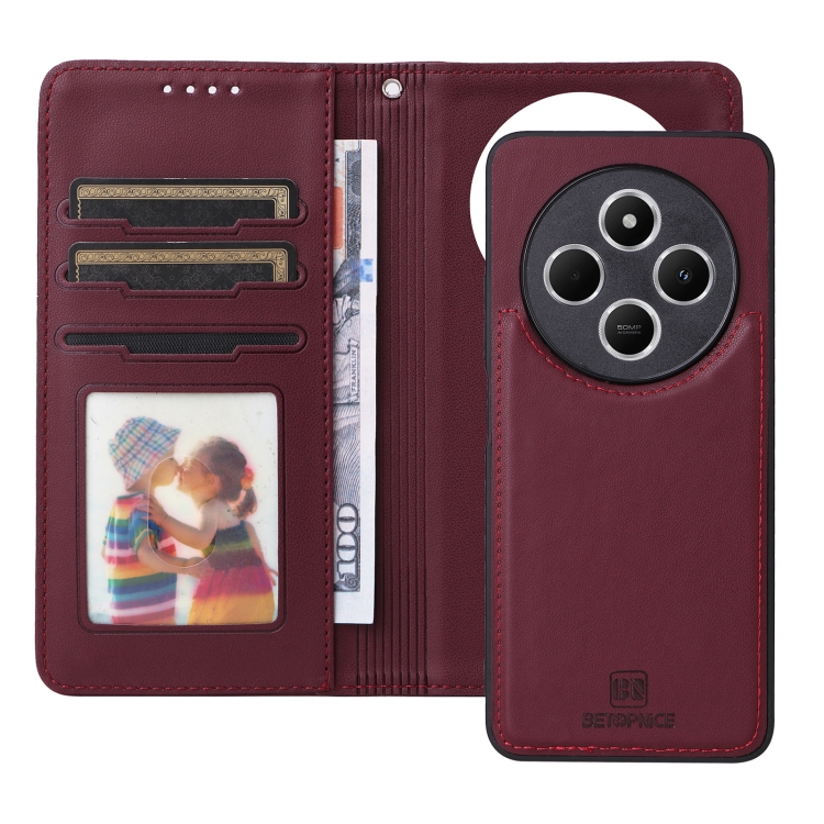 Funda para Teléfono Redmi 14C 4G Betopnice Bn-005 2 En 1 de Piel Auténtica de Imitación Desmontable (Rojo Vino)