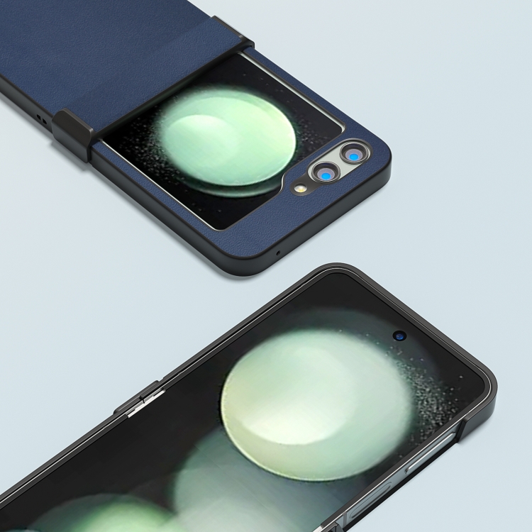 Funda para Teléfono Samsung Galaxy Z Flip5 con Bisagra de Cuero Genuino Serie Xiaoya (Azul)