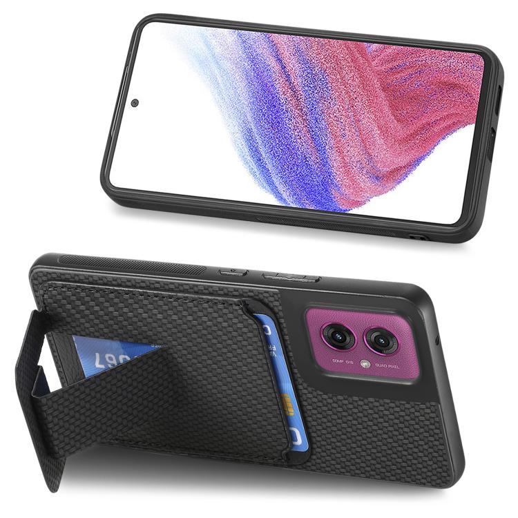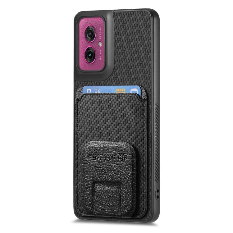 Funda Plegable Motorola Moto G55 con Soporte y Tarjetero de Fibra de Carbono (Negra)