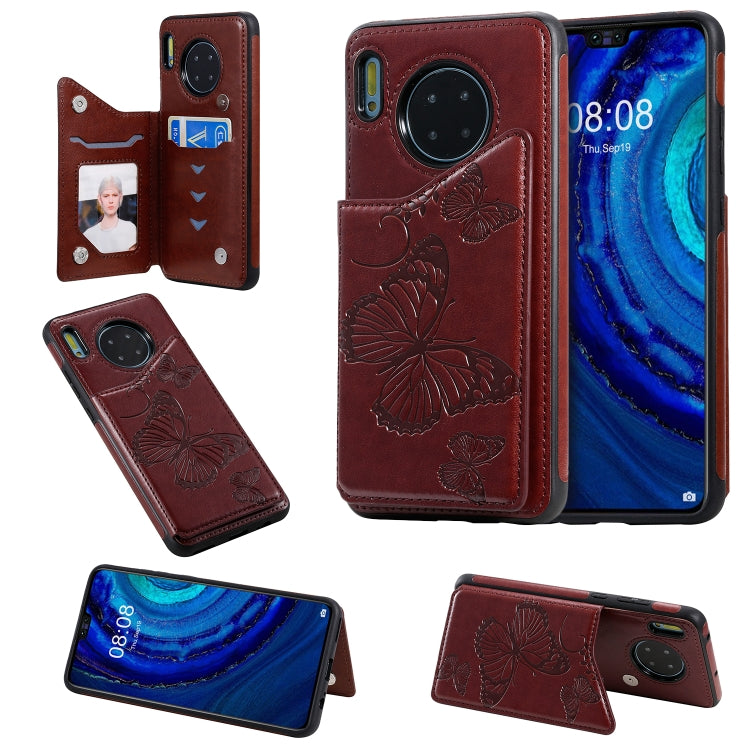 Étui de protection antichoc à motif de gaufrage papillon Huawei Mate30 avec support, fentes pour cartes et cadre photo (marron)