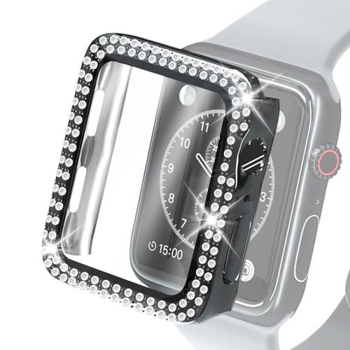 Funda Protectora Diamante Galvanoplastia con Vidrio Templado para Apple Watch Series 6 SE 5 4 40mm (Negro)