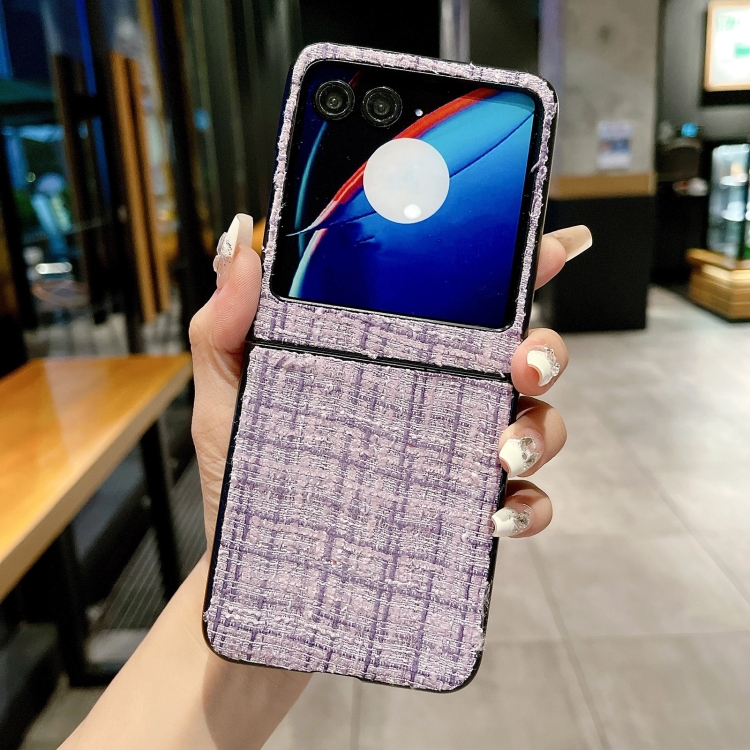 Funda Protectora PC Tela a Cuadros para Motorola Razr 40 Ultra (Morado)