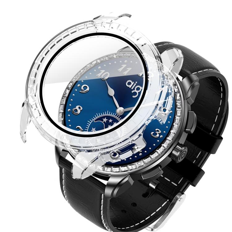 Funda protectora para reloj inteligente Aigo M8 con película templada integrada para PC (transparente)
