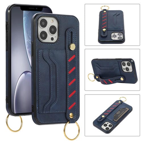 Funda Telefónica de Cuero Cartera Pulsera para iPhone 13 Pro (Azul)