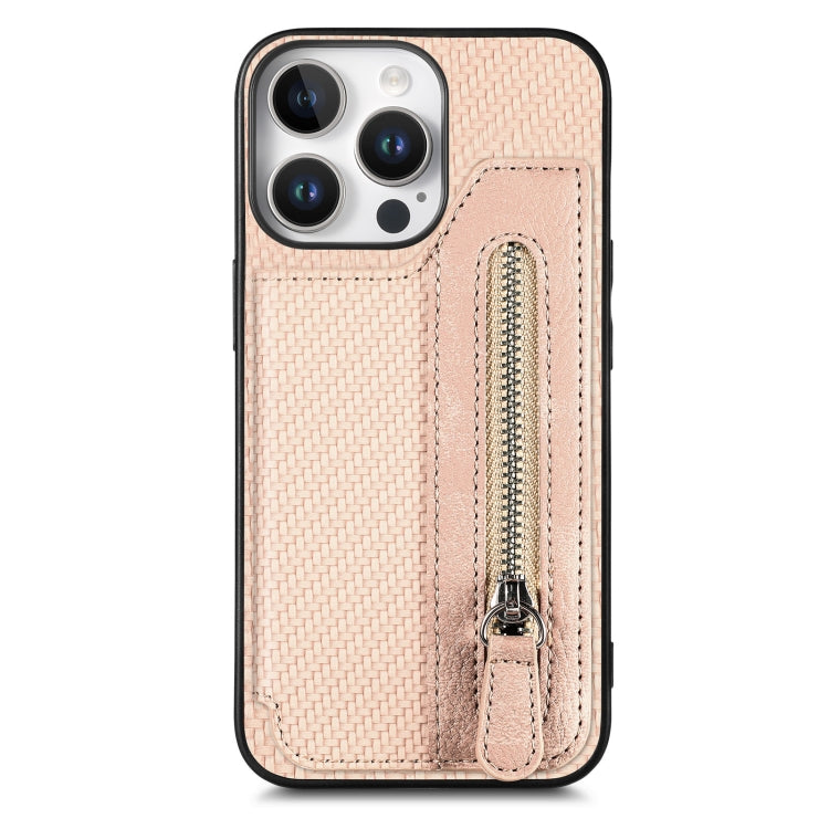 Funda Tipo Billetera Fibra de Carbono iPhone 16 Pro Max Tapa Horizontal Cremallera (Caqui)