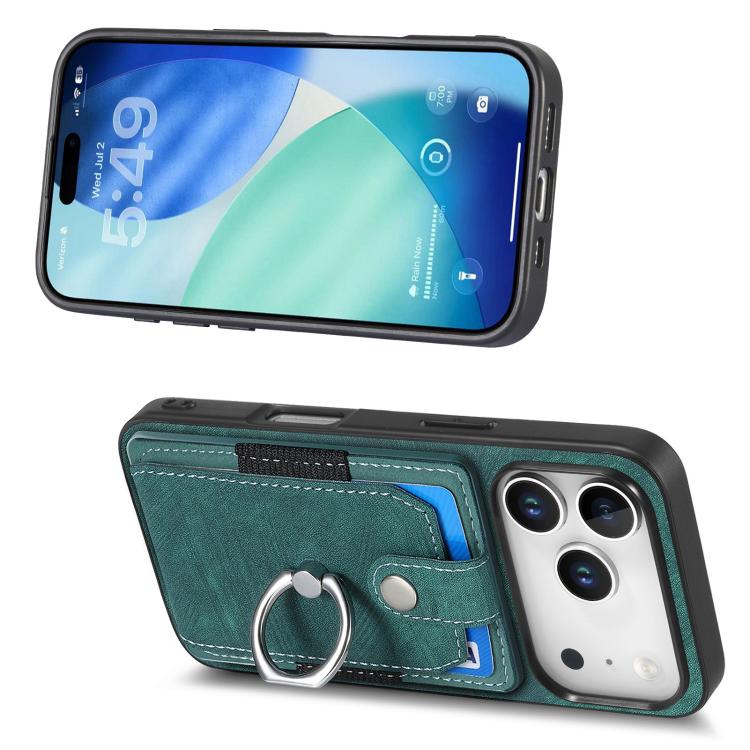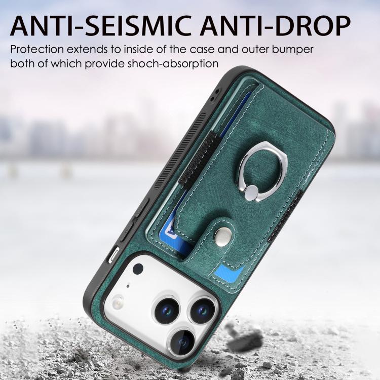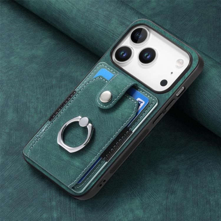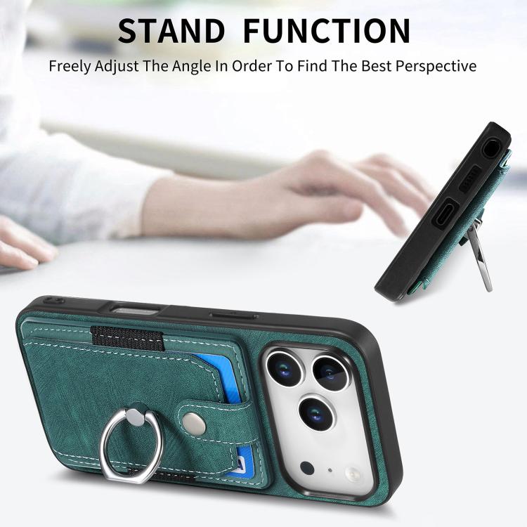 Funda tipo cartera con anillo y tarjetero para iPhone 17 Pro Max, estilo retro, con tacto de piel (verde)