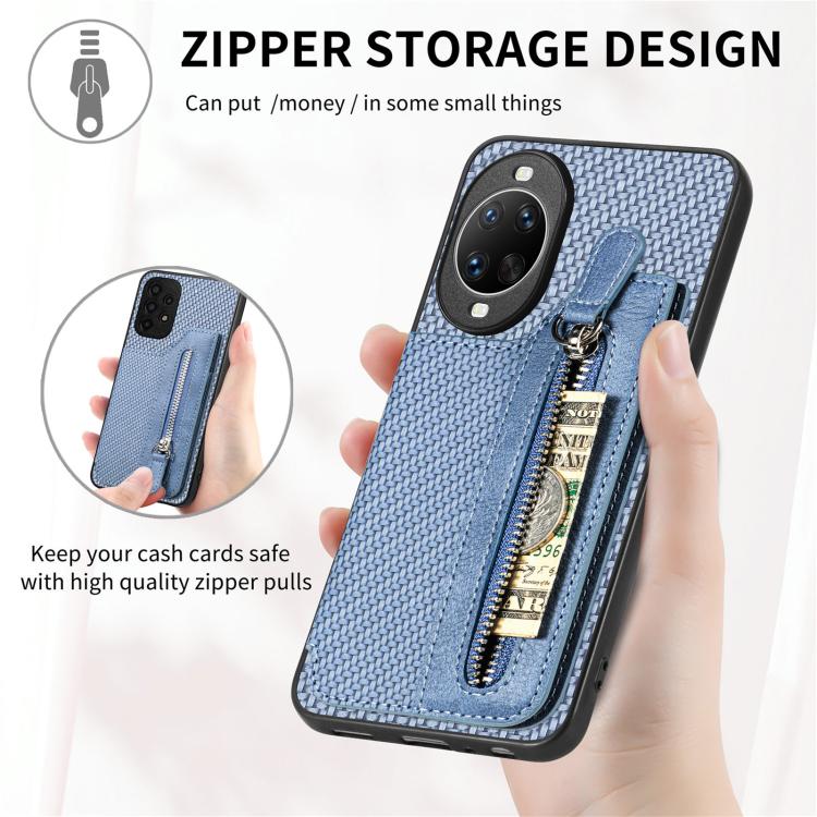 Funda tipo cartera con cremallera horizontal de fibra de carbono para Huawei Nova 14 (negra)