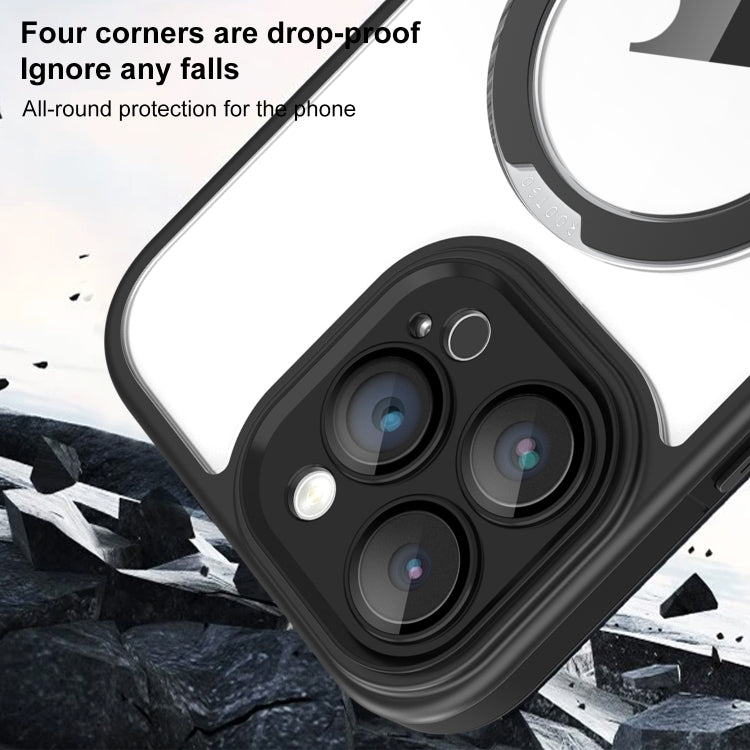 Funda Transparente con Soporte Magsafe para Lente de Cobertura Total iPhone 15 Pro (Negro y Blanco)