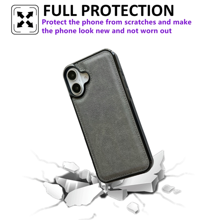Funda Trasera iPhone 16 Textura Piel de Vaca (Gris)