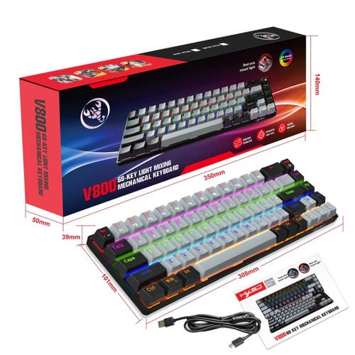 - 1x Teclado Mecánico Hxsj V800 68 Teclas Cableado Tipo-C Retroiluminación Eje Rojo