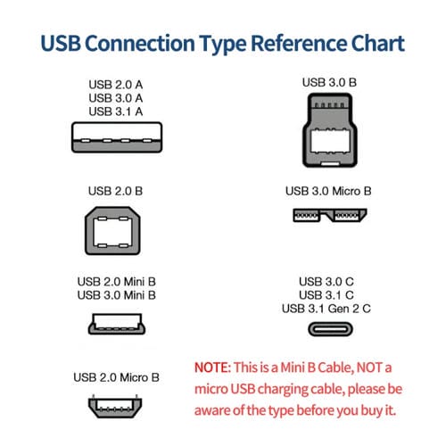 - Longitud de 1,5 metros, con Conector Mini B de 5 pines en orientación Izquierda; Conectores chapados en oro para mejor conductividad; velocidad de transferencia compatible con USB 2.0