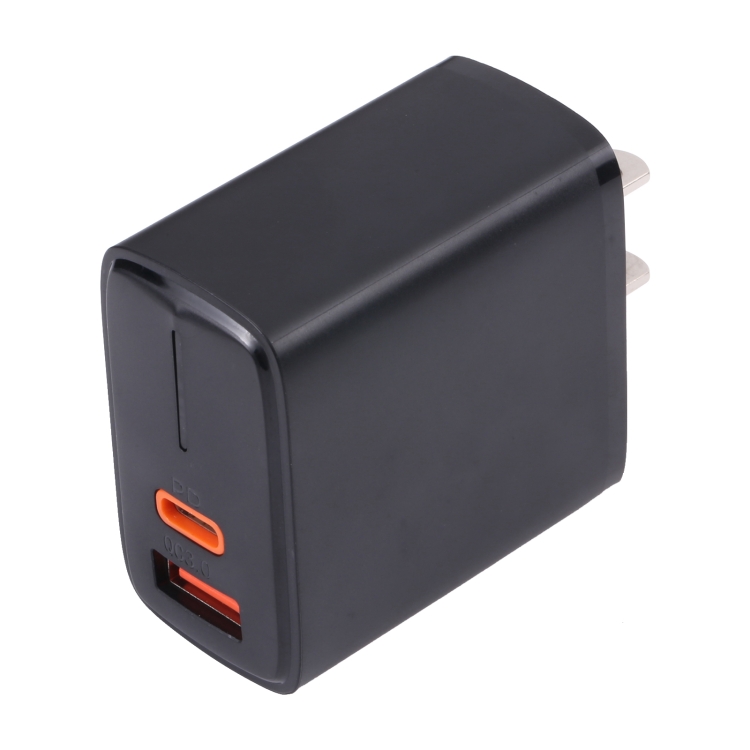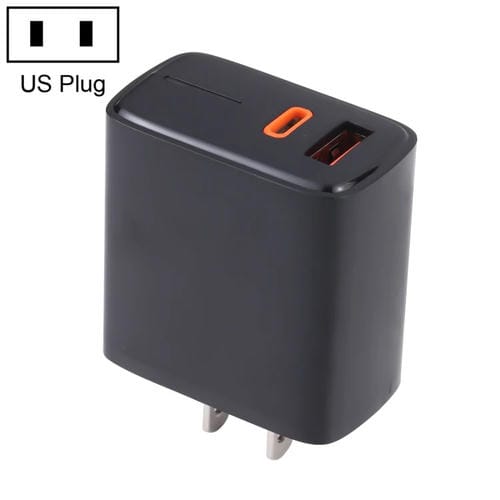 Cargador rápido USB Lz-1130 Pd 20W Type-C y Qc 3.0 con enchufe US (Negro)