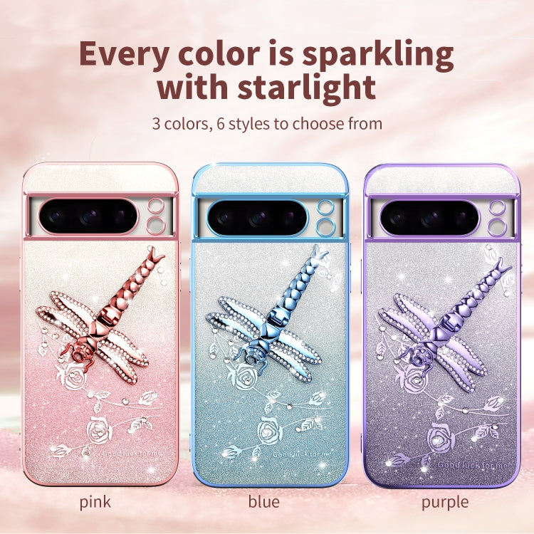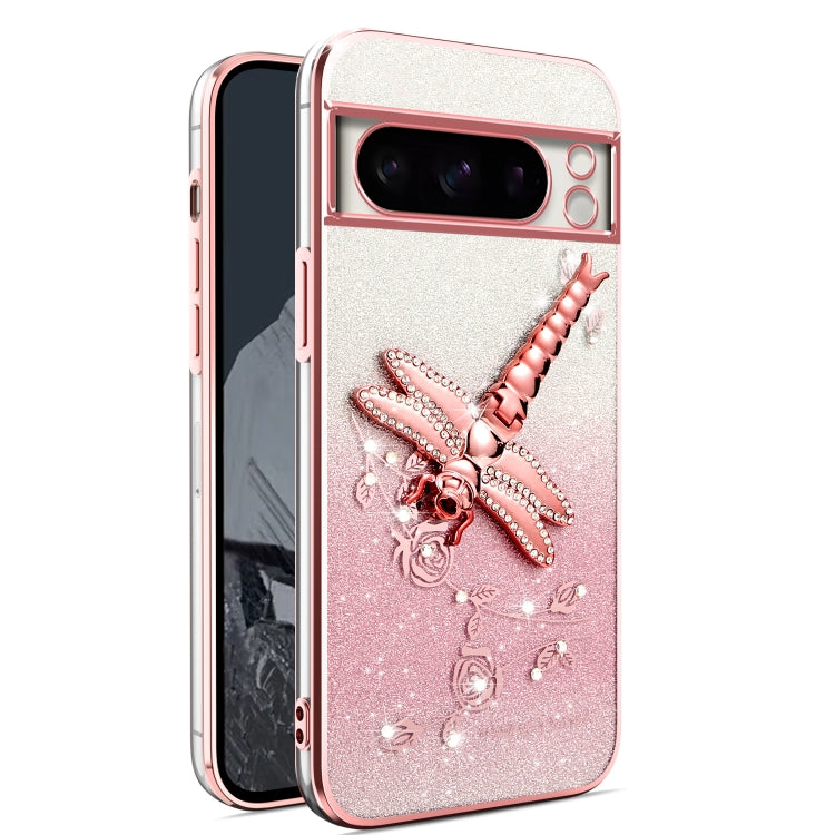 Estuche para Google Pixel 8 Pro con Soporte Libélula 3D y Purpurina Degradada (Rosa)