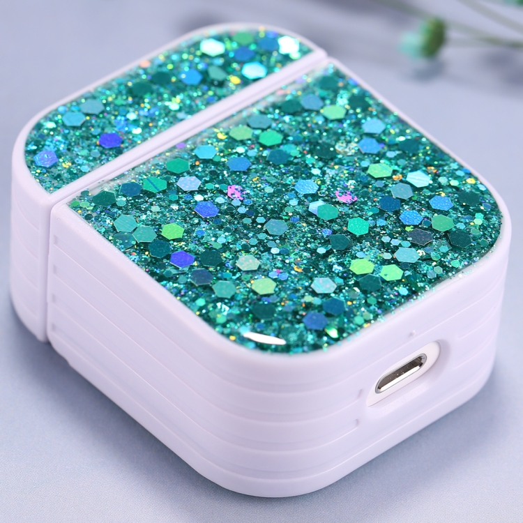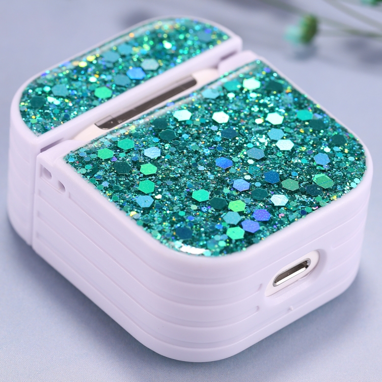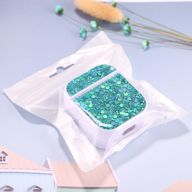 Funda Protectora para AirPods 1/2 Glitter Sequins para Auriculares Inalámbricos (Lake Blue)