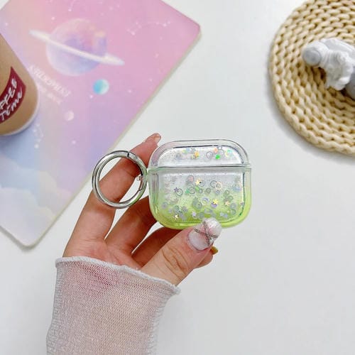 For AirPods Pro 2 Clear Glitter Bluetooth Earphone Protective Case (Green)