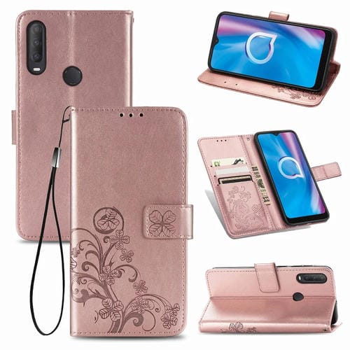 Estuche Cuero para Alcatel 1S (2020) con Cierre, Hebilla, Ranura Tarjeta y Soporte (Oro Rosa)