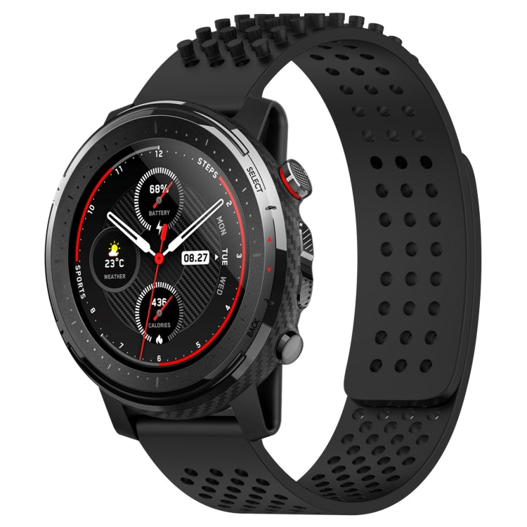 Correa de Reloj silicona para Amazfit 3 con puntos 3D transpirables orificios 22mm (Negro)