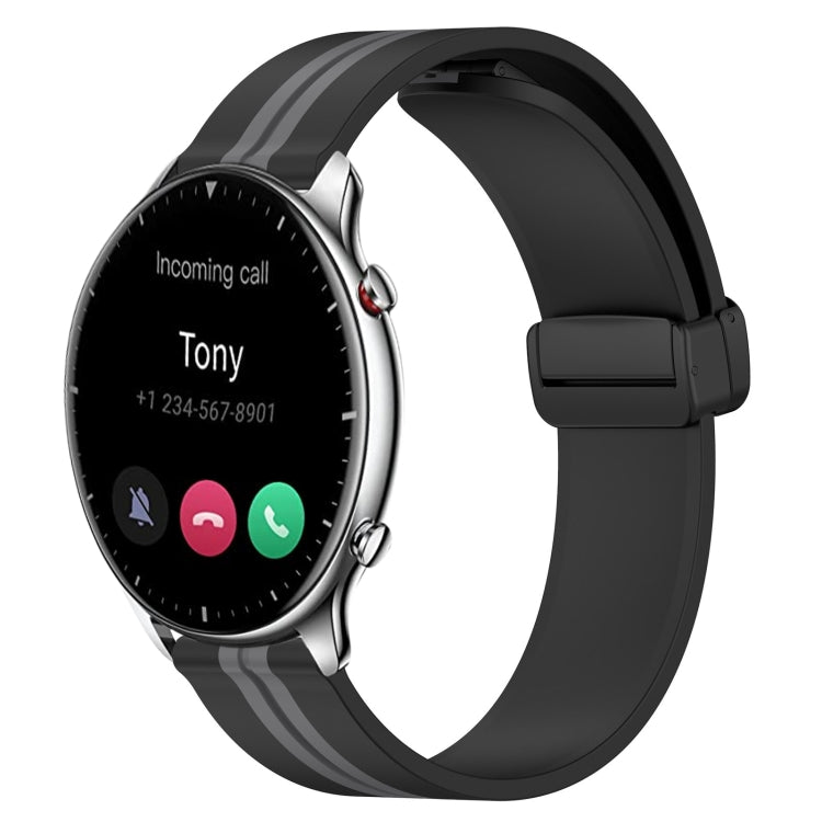 Pour bracelet de montre en silicone Amazfit GTR 2 22 mm avec fermoir magnétique pliant (noir + gris)