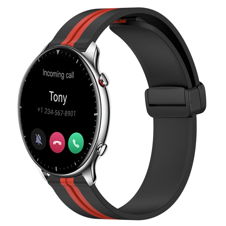 Pour bracelet de montre en silicone Amazfit GTR 2 22 mm avec fermoir magnétique pliant (noir + rouge)