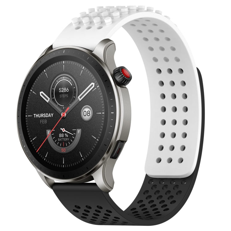 Correa de Silicona para Amazfit GTR 4 Pro con Puntos 3D Transpirables y Orificios 22mm (Blanco + Negro)