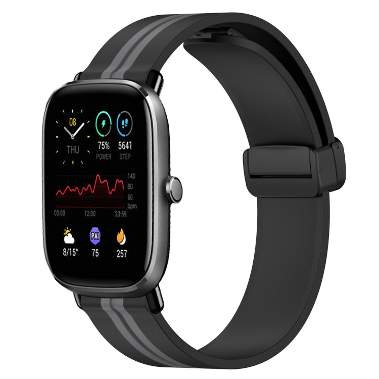 Pour bracelet de montre en silicone Amazfit GTS 2 Mini 20 mm avec fermoir magnétique pliant (noir + gris)