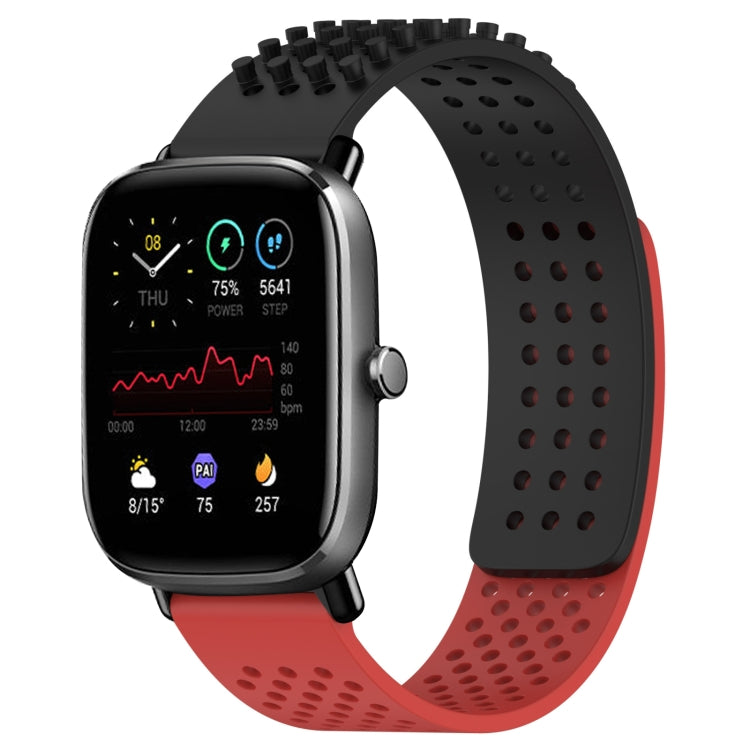 Correa de Reloj Silicona para Amazfit GTS 2 Mini con Puntos 3D Transpirables y Orificios 20mm (Negro + Rojo)