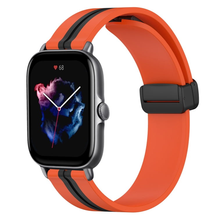 Correa de Reloj para Amazfit GTS 3 20mm Silicona con Cierre Magnético Plegable (Naranja + Negro)