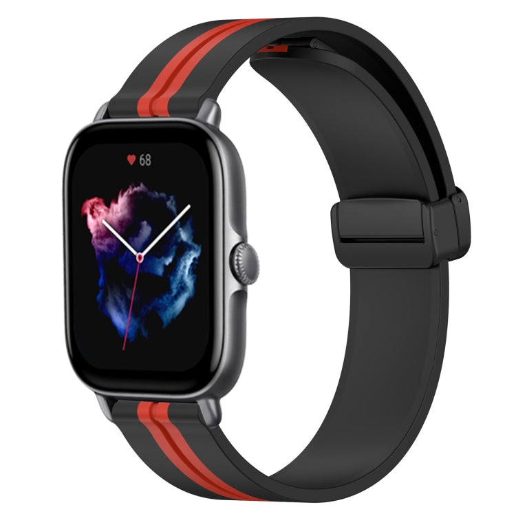 Correa de Reloj para Amazfit GTS 3 20mm Silicona con Cierre Magnético Plegable (Negro + Rojo)