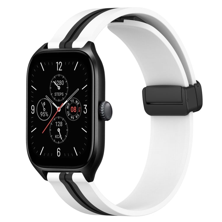 Pour bracelet de montre en silicone Amazfit GTS 4 20 mm avec fermoir magnétique pliant (blanc + noir)